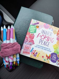 I got some really cool stickers at Giftmas time, and for Valentine’s Day my beloved got me more delightful stickers of favorite characters (Bubu and Dudu). I carefully shopped for a blank book with specific characteristics I like for writing: size B5, bound so that it opens flat without breaking the binding, a cover that appeals to a certain something within me that feels relevant to the journey, and a type of paper that feels good to write on. No compromises; I shopped for many weeks until I found what I was looking for. Even the ballpoint pens were carefully chosen to meet my needs and suit my preferences and writing style.