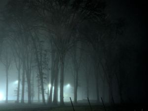 I’m on the trail this morning. It’s been a few days. There aren’t many changes. The morning is foggy and chilly, but not really cold. This trail is mostly paved and about half of it is lit by parking lot and walkway lights. The dense fog makes everything look mysterious and a little spooky.