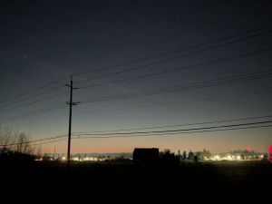 Daylight. Across the highway I can see the lowland farm fields that in previous years have reliably become a shallow seasonal lake favored by migrating birds each winter. This morning it is a grassy field, mown short, covered in frost. G’damn I hope the planet recovers from the damage we have done (with or without us). I’d like to be around to see that.