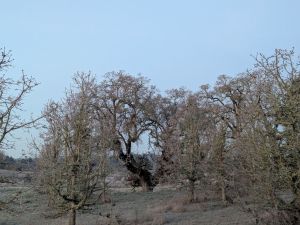 As the first light of day begins to touch the treetops, the frosted meadow grass sparkles. The hint of white suggests snow from a distance, but there’s been none of that. I’m selfishly grateful, but dismayed when I also think about summer ahead, crops, and the possibility of wild fires. Being good stewards of this one planet that is our home has not been easy for human primates; we tend towards self-serving greed and shortsightedness. We could do better.