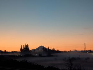 It was just the start of sunrise when I reached the trailhead this morning. Chilly. A mist clinging to low places. Pretty morning, and I stepped out of the car delighted to see the clouds disappearing toward the horizon, infused with pink.