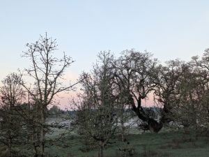 I watched the moon set as I walked. I listened to flocks of geese passing overhead, and little birds in the trees as I passed by. What a lovely morning!