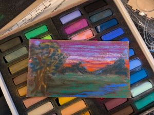 When I began painting in pastels, in July 2024, I had already collapsed my studio to make room for the Anxious Adventurer. I’ve never had my studio available for working in pastels. This feels exciting and new. After the first flurry of eager creative work in a new medium, the fatigue of caregiving began to overwhelm me, and certainly I had nothing left over for art once life was done with me each day. The Anxious Adventurer proved to be damned little help with caregiving, at all, that was all on me. What help he did provide generally came at the cost of my cognitive capacity, resulting in still more fatigue. He didn’t know our ways, and definitely seemed more an adolescent than the grown adult I was prepared for (based on his age). His chronic negativity was draining. The contentious relationship with his father was… annoying.