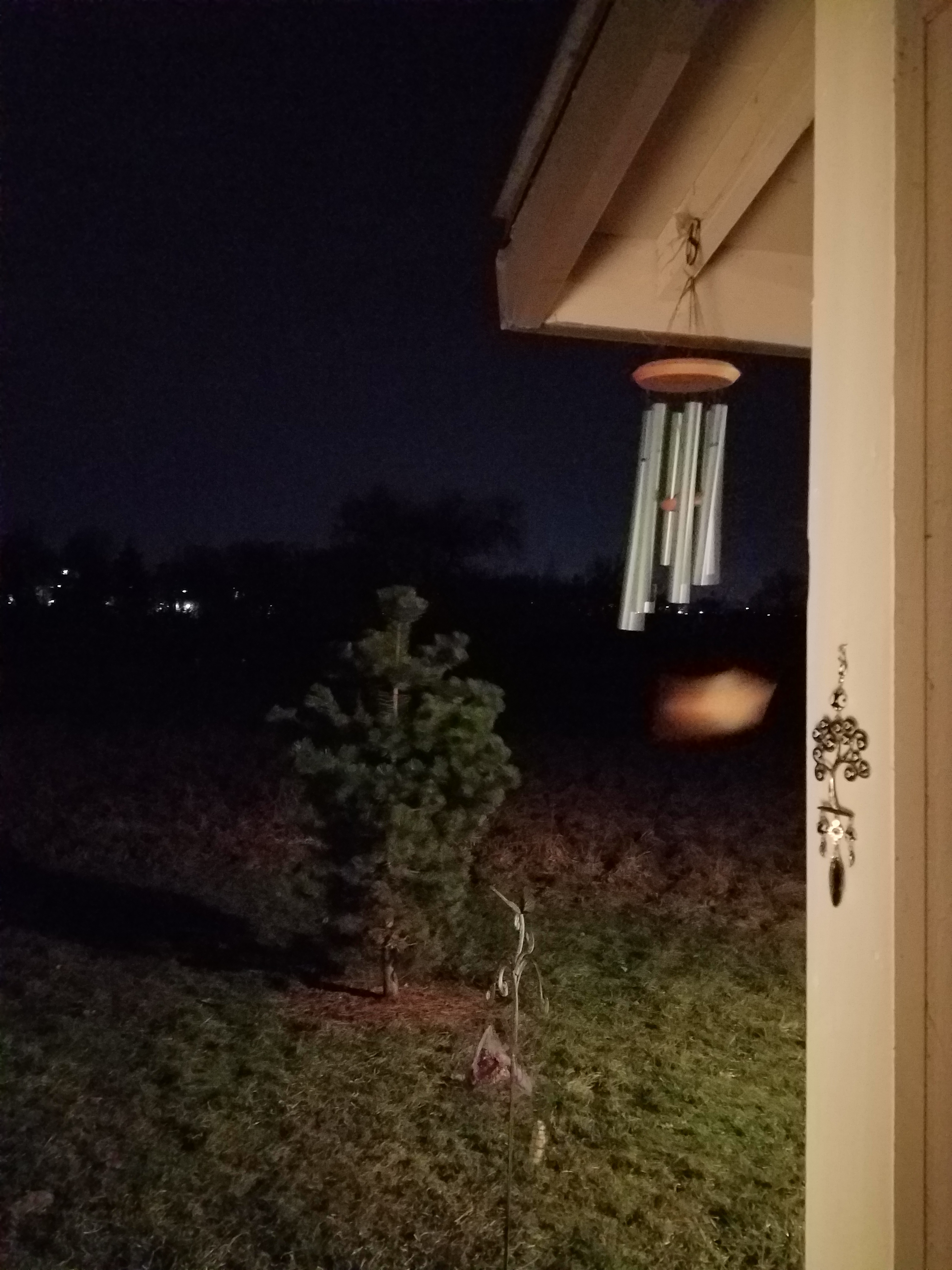 The wind chime on the patio is clanging away rather rudely. I know from this that it is a windy morning. The wind in the tree tops beyond the meadow makes a distance roaring sound that blends with the morning traffic, and the sound of the train even farther beyond the trees. I enjoy the moment precisely as it is, without reservations, and without diminishing it with all the many human dramas playing out across social media, news media, and my Facebook feed. I have not yet looked at any of that. I find the morning starts more pleasantly choosing to save that for later.