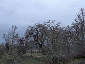 The rain stops. My Traveling Partner pings me a good morning greeting as he wakes. A large flock of geese passes overhead. There are more storm clouds on the horizon. The sky is a homogeneous milky gray. I sit with my thoughts and this quiet feeling of joy, and prepare to begin again.