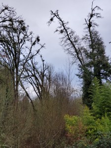 The Vine Maples and Big Leaf Maples extend their bare branches, but without their leaves, I can see almost all the way across the park from a high vantage point on one side.