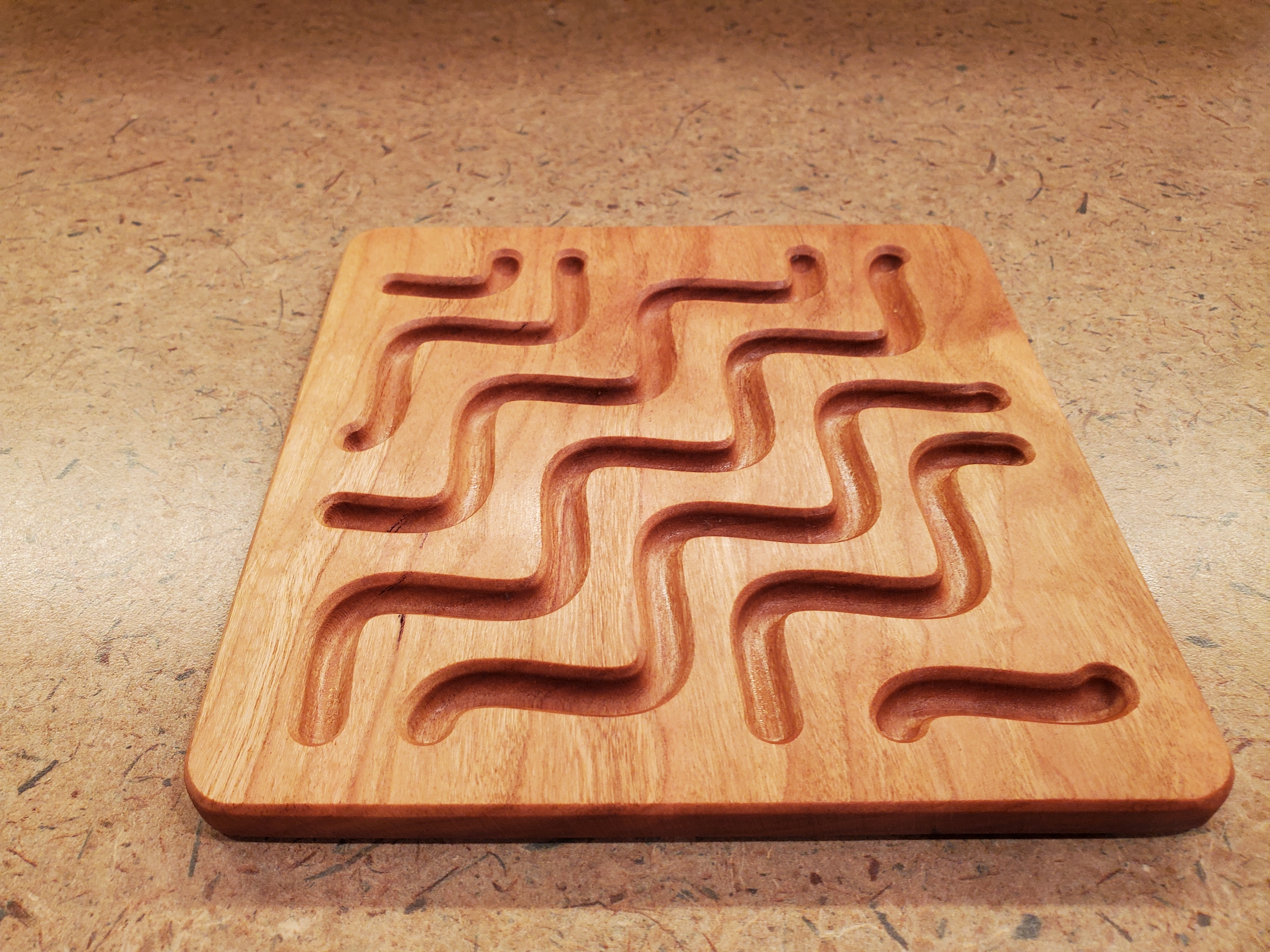 This has been a good weekend of self-care and partnership. My Traveling Partner and I spent time in his shop together working on a project – the first “from nothing to something” project to come off this new CNC machine. Exciting! It’s a small thing – a trivet. I needed one in the kitchen, though, to avoid setting very hot pans on our countertops, which are not stone, or made from stone, just some ordinary enough surface that could be at risk of damage from excessive heat. I like to take care with things.