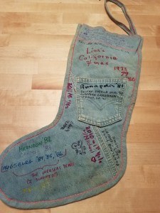 My Giftmas stocking – and how I keep track of where I was each Giftmas. 😀