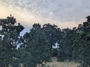 By the time I reached the trailhead, the sunrise was over. The morning is quite cloudy and hints at rain. The ferocious heat has abated somewhat, and it is cooler than it has been, pleasantly so. The morning is quiet, but here in this place, I do hear the traffic on the adjacent highway as I lace up my boots. I listen to little birds chirping and carrying on, and I wonder what they are so excited about first thing?